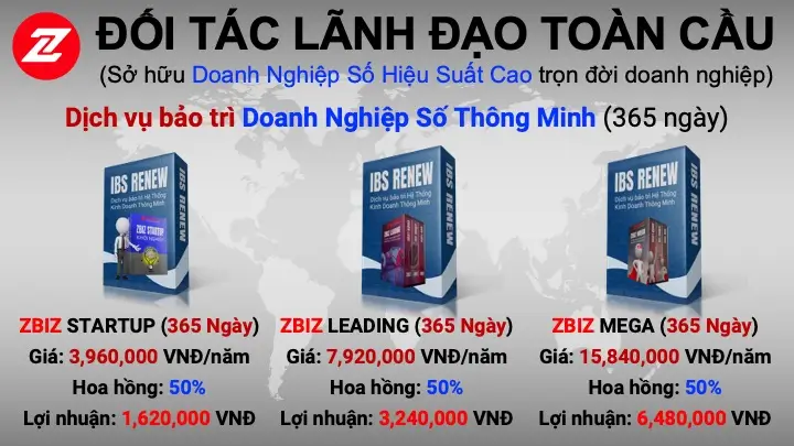 BAO GỒM TRONG DOANH NGHIỆP SỐ THÔNG MINH CỦA ĐỐI TÁC KINH DOANH HIỆU SUẤT CAO ZBIZ MEGA